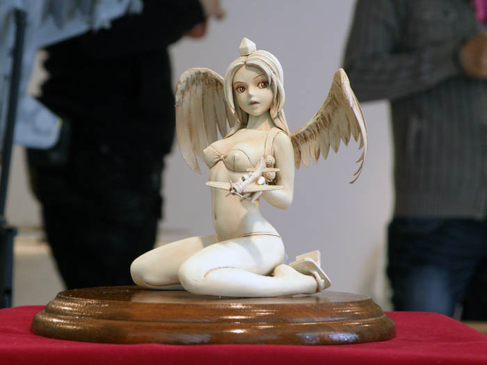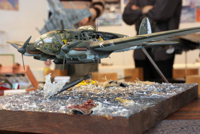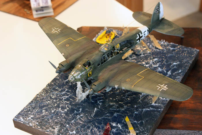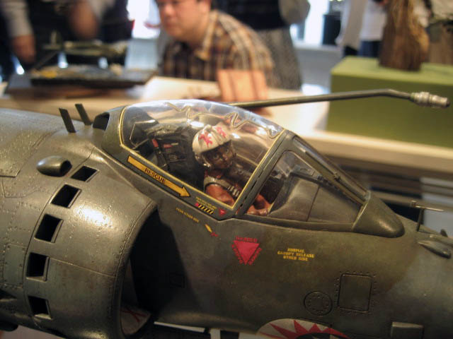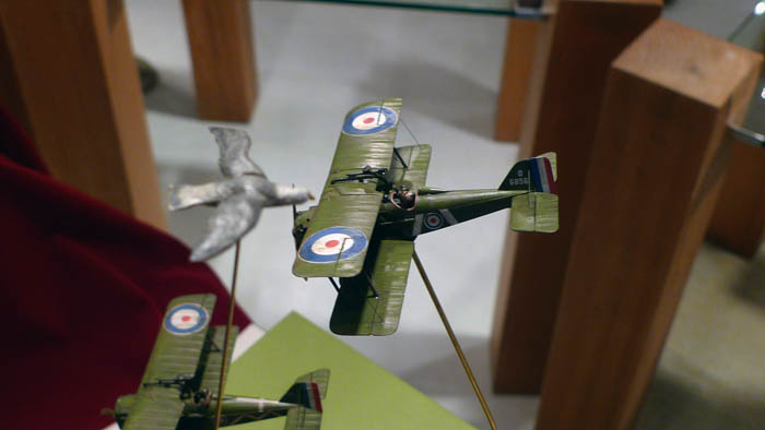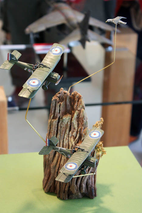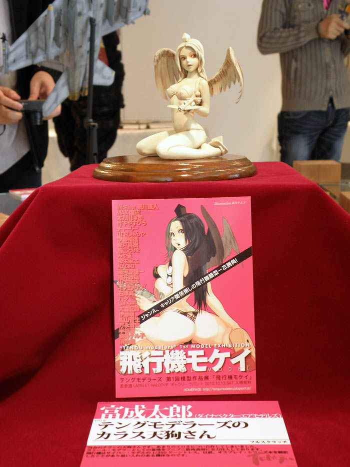ハインケル111H-6のハセガワのボックスアートの魚雷投下シーンを見て、これは作らなくてはと思ってしまい製作しました。 表面的には、ボックスアートの世界感を、裏側から見ると、He111の内部が覗けるカットモデリングの円形劇場世界へとダブルで楽しめるジオラマに。 あれから20年後…という設定で屋根裏部屋に置いてあるトランクを モチーフに、フィオとポルコ、ジーナのその後をイメージしてみました。 初めての模型作りですので、自分でも楽しめるようにフィギュアの塗装は慣れた画材(ガッシュ)でトライ。 機体色は木目調にして玩具らしさを強調しました。 飛行機は以前から、映画『スカイエース(原題 ACES HIGH)』(1976イギリス・フランス)に出て来る機体“RAF S.E.5a”を作りたいと思っていました。 この時代の飛行機のスピード感を出す枠役としては鳥が良いかな?と思い、カモメのジョナサン(Jonathan Livingston Seagull)に登場頂いた次第です。 脳内の捏ち上げの世界で楽しんでいます。 当会のチラシの天狗さんです。あまりのエロさについ自作してしまいました。 スケール・モデラーとしての意地をプニプニ筋肉表現に全力注入しております。 飛行機はサイバー・モデルの1/350ドーントレス。 以前、オスプレイ・シリーズ本を翻訳したことがあり思い入れのある機体なのです。 以上が展示会参加の全30作品です。 同じ「飛行機模型」というテーマでしたが、製作者それぞれが全く違う切り口で飛行機キットを楽しんでみました。 見ていただいた方に、その楽しさが伝われば幸いです。 |