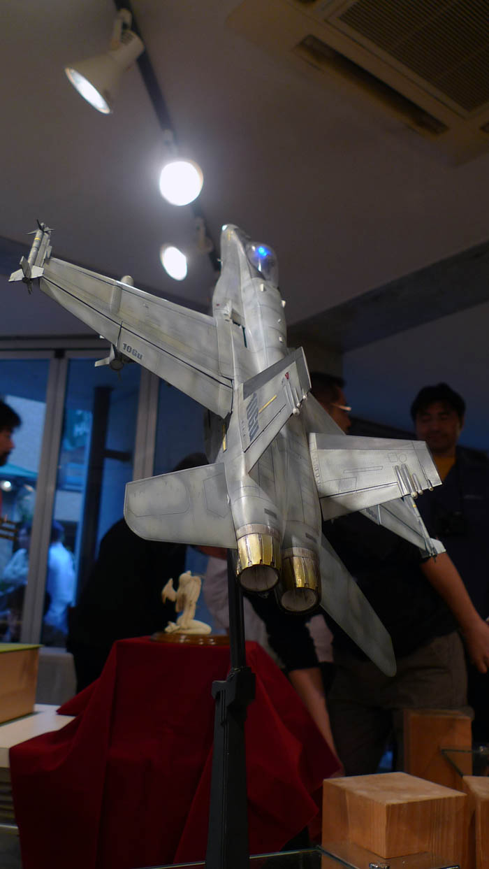 新谷かおる先生の傑作漫画「ファントム無頼」に登場する航空自衛隊百里飛基地の第7航空団第305飛行隊に所属していたF-4EJファントムです。 本体はほぼストレート組み。ピトー管、エンジンノズル、フォーメーションライトにエッチングパーツを使用しました。パイロットの顔はエポキシパテで造形。 度重なるメンテナンスによって機体の表面に現れるまだら状のリタッチ塗装をエアブラシの細吹きで再現しました。 漫画エリア88に登場する武器業者の無人ホーネットです。 作品名は漫画で無人ホーネットが登場する回の漫画のタイトルです。 キットはホーネットの決定版とも言える内容で本体は基本素組みです。 コックピットの一部とノズルにアイリスのアフターパーツを使用してます。 フィギュアと言う名の搭載カメラをジャンクパーツからスクラッチ。 ラッカー下地のアクリルガッシュ仕上げです。 新谷かおる先生の漫画「エリア88」に登場するキャラクター、キム・アバのハリアーを製作しました。 キムのハリアーはFRS.1をベースにしていると思われますが、細部の仕様は不明です。 これに1974年製の正確なのかなんだかイマイチ解らないキットの素性がバッチリフィット。過剰なモールドと相まって非常にキャラクターモデルらしい仕上がりになったと思います。 塗装はカラーイラストを参考に、マーキングはアレンジを加えてみました。 空中給油機を改装した、対流圏に漂う汚染物質を回収する除染型。バイオ工学で作られた皮膚と臓器を持つ。 機体表面の微細な孔から粉塵を取り込み、スキンパネル内に張り巡らされた脈管を通して胴体に集めゲル状物質に封入する。 アカデミーの1/72 KC-97Gにアレンジを加えて製作しました。 フィギュアにはPreizer 1/72 Anti Tank Gunnersを使用しています。 いよいよ次回ファイナルです。 |